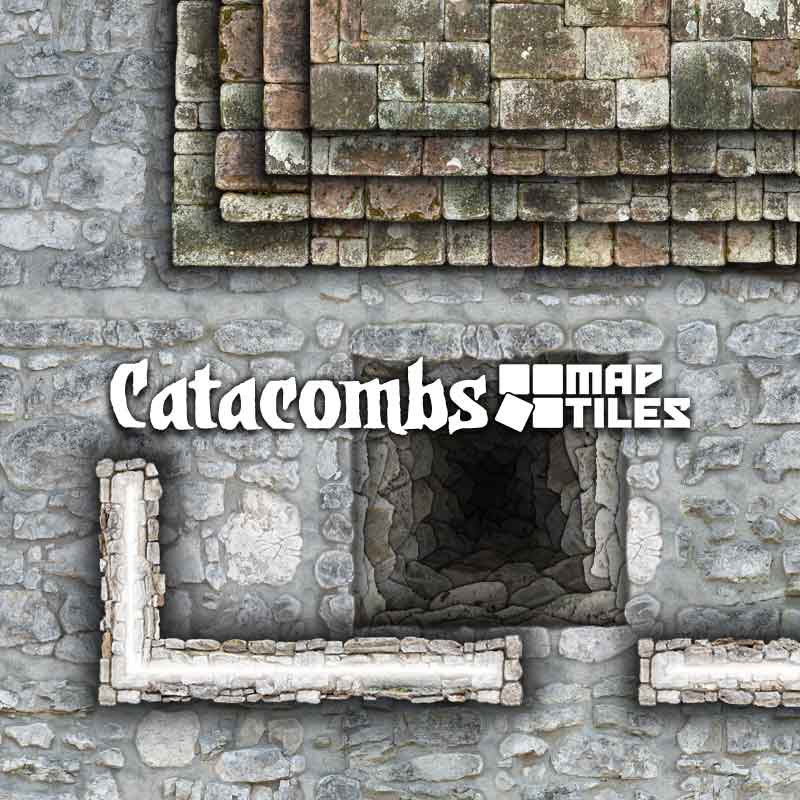 The Catacombs Map Tiles package provides Game Masters with a range of art assets for creating fantasy roleplaying adventure maps. Use the package as a stand-alone set of assets to create dungeons, ancient crypts, and monster lairs. Or combine this collection of art assets with other packs from Studio WyldFurr’s range of Map Tiles, for an unlimited world-building toolkit.