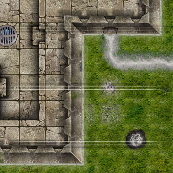 Each dungeon map tile is a combination of hand drawn artwork and photographic source material that gives us the unique style of all Studio WyldFurr Maps. All of the tiles have been rendered from a birds eye view of the landscape, with shadowing used to give the illusion of depth.