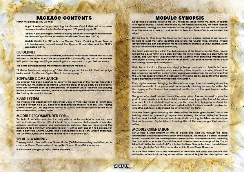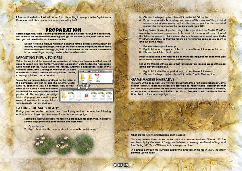 Next up are the maps for the Crystal Mine itself, each map is cross-referenced in the guide with a detailed description. Lastly you will find a folder of Character Tokens that you can use to display each of the NPC’s found inside the Crystal Mine on the virtual tabletop.