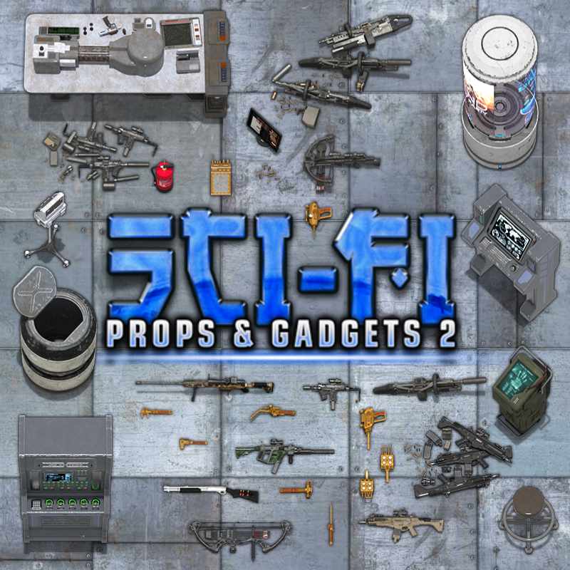 This token package is aimed at expanding our first Science Fiction collection of tokens with more Props and Gadgets. This art pack can be employed as a collection of tokens on the Virtual Tabletop during a game, or as art assets during adventure map creation. This collection of assets gives you the Game Master a collection of Props such as computer units, sci-fi control tables, weapon “treasure” piles, auto-guns, etc. Combine these art assets with our Map Tiles and you have a complete cartography system for creating adventure maps for role-playing systems such as GURPS, Starfinder, Shadowrun, Paranoia, or any other science fiction based role-playing game.